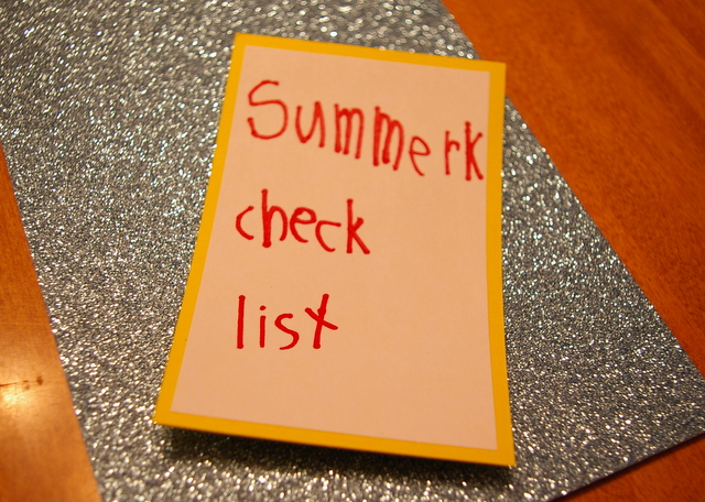 A Summer Checklist, created by your child, with a pen so your child's teacher can be ready to cross off the items on the list. What I love most about this, is that my children made it. They came up with the ideas for the checklist on their own. They chose the stickers they wanted to decorate it with. They did (or tried to do most of) the writing.